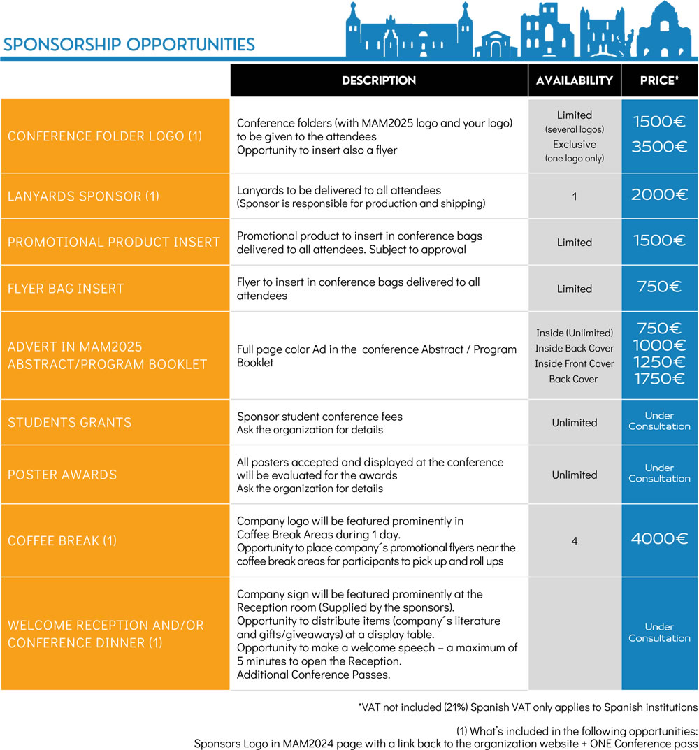 Sponsorship opportunities are designed to meet your business development goals and objectives. MAM2026 offers a tremendous opportunity to market to one of the largest 2026 European gatherings of MAM2026.