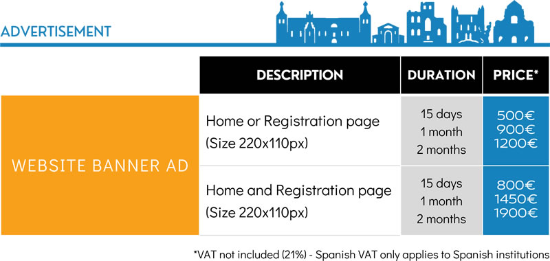 - Advertisement – Banners, Program Ads, Logo Displays (Landing or registration pages, Abstracts booklet) |