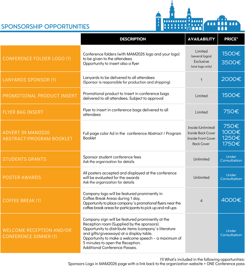 Sponsorship opportunities are designed to meet your business development goals and objectives. MAM2026 offers a tremendous opportunity to market to one of the largest 2026 European gatherings of MAM2026.