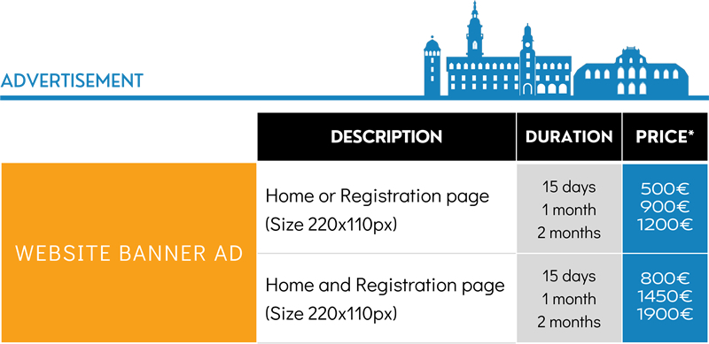 - Advertisement – Banners, Program Ads, Logo Displays (Landing or registration pages, Abstracts booklet) |