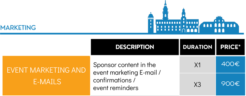 Opportunity to include the event sponsors' content in the marketing email, confirmations, and event reminders. Give the sponsors the opportunity to create content that relates to the topic of the event that can be distributed in one of these email communications.